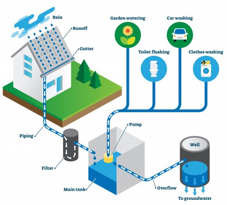 - Rainwater catchment systems can be easily retrofitted to an existing structure or built during new home construction